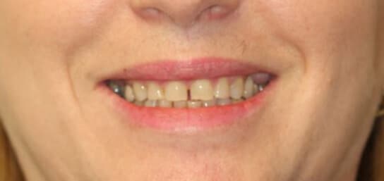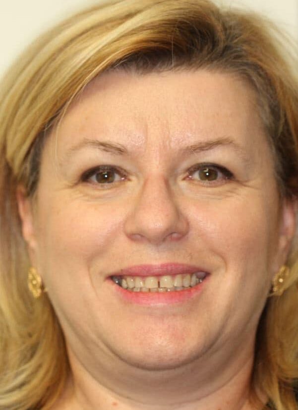 This patient was experiencing severe bruxism, grinding, and a locking jaw, as well as headaches and neck pain. Due to the pressure and stress put on her teeth by these symptoms, they were beginning to deteriorate. Additionally, her past dental work, including an implant placement, was starting to fail. Luckily, we were able to give her a full mouth rehabilitation. Now, she is pain-free and ready to experience life to its fullest again.