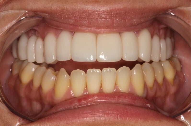 As a mother of two young ones, this patient of ours never put herself first. She dealt with constant headaches, congested/ringing in both ears, and dry mouth. Her symptoms slowly worsened, which affected her ability to focus on everyday life. She went through two phases of treatment, the first focusing on the position of her bite with a removable orthotic and the second placing a full upper porcelain restoration to finalize her bite position. After the end of her treatment, she left feeling confident, happy, and grateful overall.